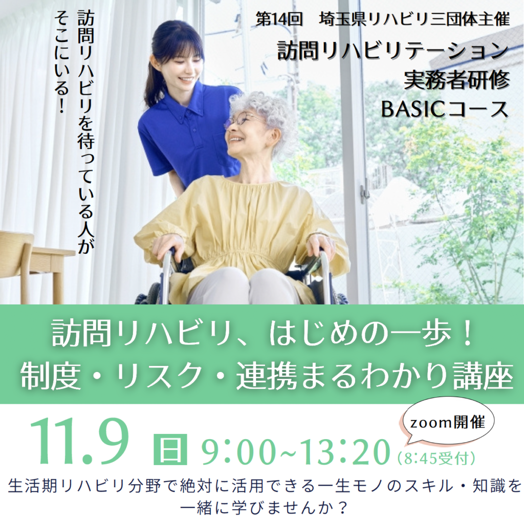 埼玉県でも、理学療法士会・作業療法士会・言語聴覚士会の三団体が協力し、下記のとおり研修会を実施いたします。本研修では、訪問リハビリの制度、現場で役立つリスク管理、多職種連携について、実例を交えながらわかりやすく学べる内容となっております。